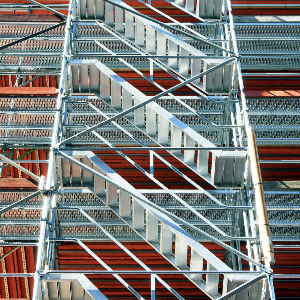 V najem oddamo zunanja stopnišča, ki omogočajo hitro in varno montažo ter uporabo le teh v sklopu gradbenega odra ali popolnoma neodvisno od gradbenega odra.